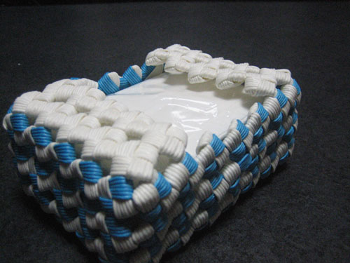 エコクラフト(紙バンド)で作ったポケットティッシュを入れる箱です。